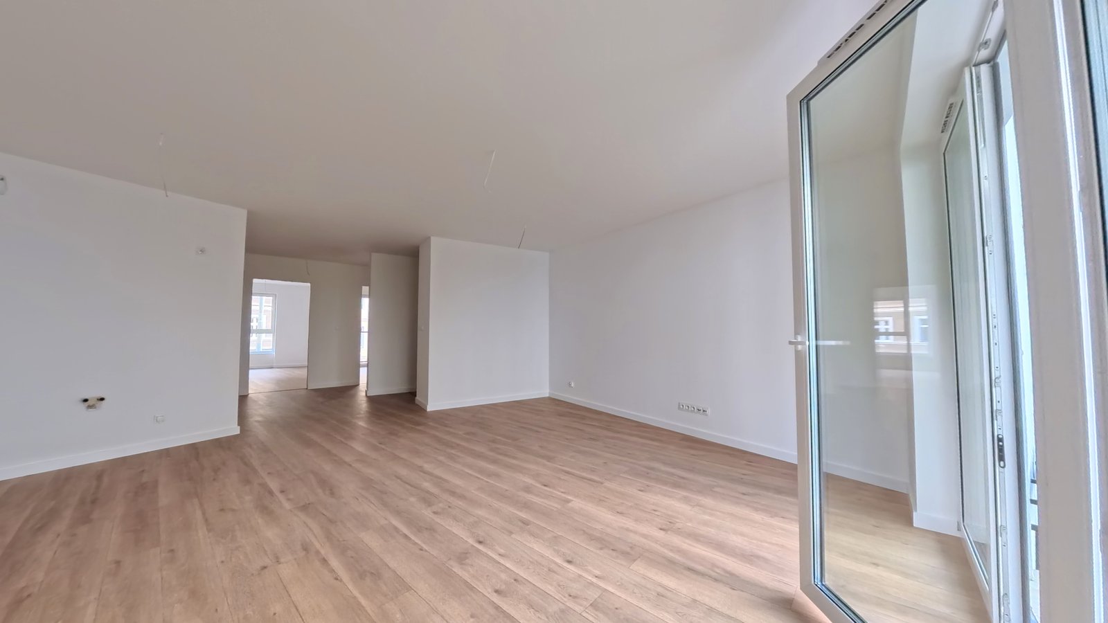 Mieszkanie przygotowane do dalszych prac wykończeniowych — z wykonanymi instalacjami, tynkami oraz gładzią na ścianach. To rozwiązanie dla osób, które chcą samodzielnie zaprojektować swoje wnętrze od podstaw.